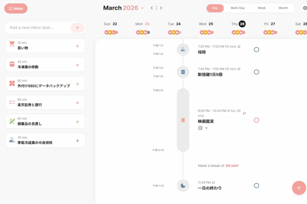 体調が悪い日はスパッと休む。罪悪感なし。次の日また差し込めばいい——Structuredでスケジュールを管理していると、「明日ここに入れ直せばいい」という感覚になれて、気持ちがずいぶん楽でした。